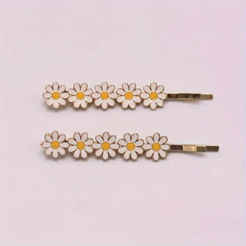 2pcs Elegant Fresh Enamel Daisy Hair Clips, Golden Simple Basic Hairpins, For Women Girls Casual Christmas Party, Outdoor Decors, Gift Photo Props