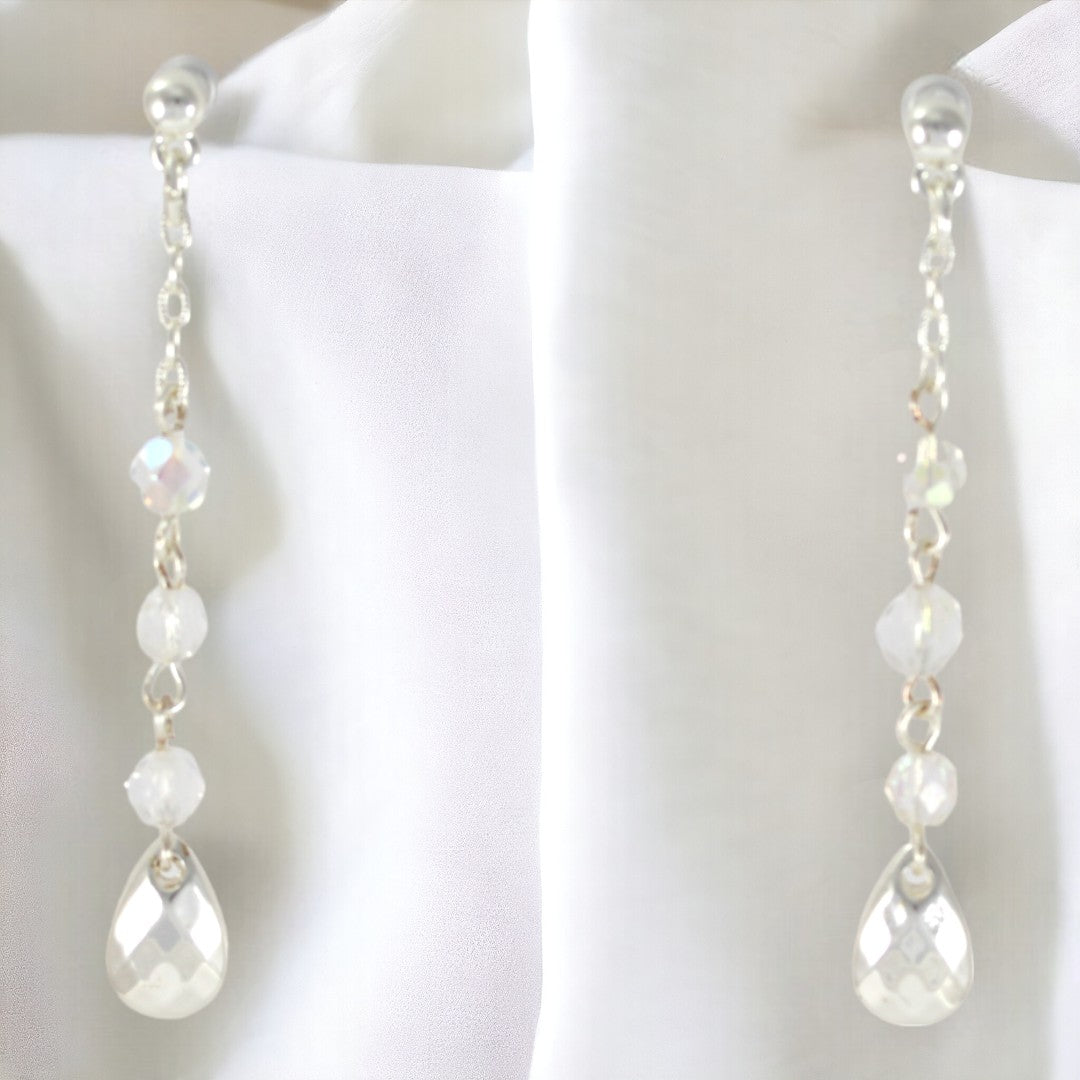 Make a statement that shimmers with sophistication with our stunning Long Crystal Silver Plated Stud Earrings. Meticulously crafted and adorned with a 24K silver-plated finish, these earrings are a dazzling embodiment of timeless allure and elegance.