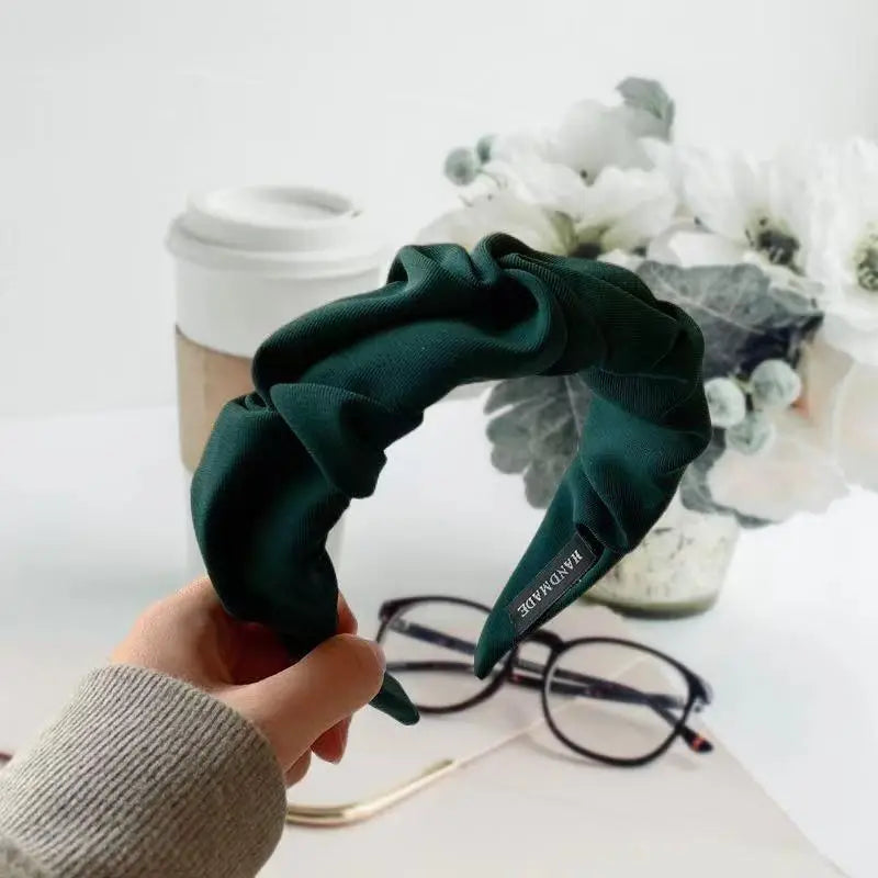 Dark Green Solid Color Ruched Simple Knotted Wide Hairband Retro Headband Hair Accessories For Summer Beach Travel