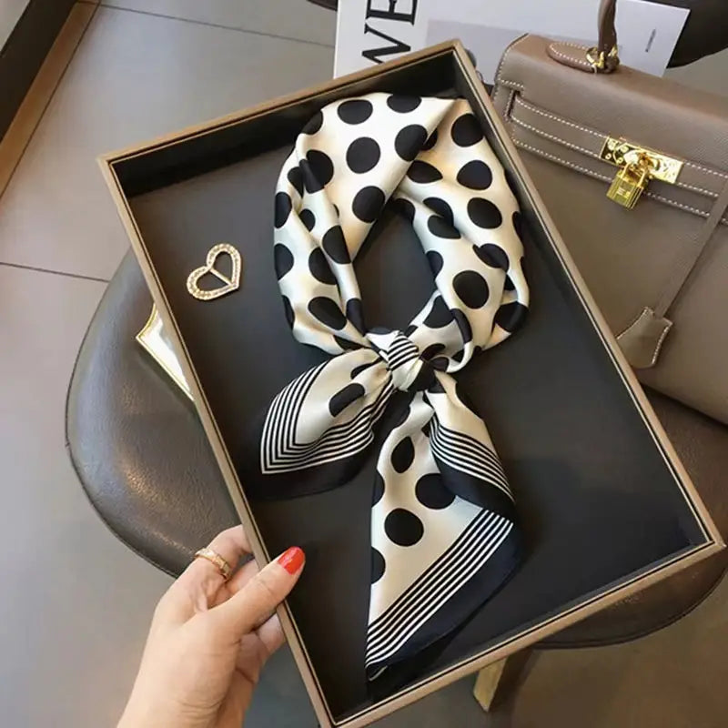 Square Imitation Silk Scarf Black And White Striped Head Wrap For Women Multifunction Silk Feeling Neckerchief.