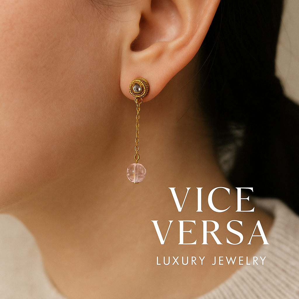 Delicate & Fancy Dangle earrings. These earrings are more than just accessories; they are an expression of your individuality. With our Pink Dangle Gold Plated Earrings, you're making a statement – a statement of grace, confidence, and timeless style.