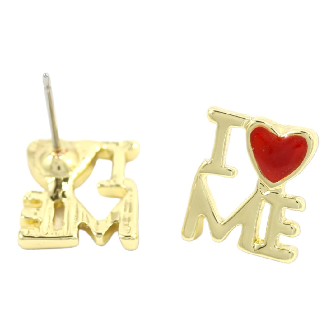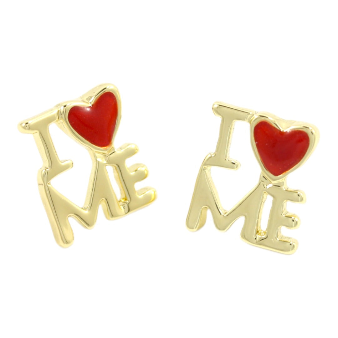 🎁 Embrace Self-Love: Make a bold statement with the 'I Love Me' Red Heart Gold Plated Stud Earrings. Order yours today and let your ears shine with the empowering beauty of self-love."