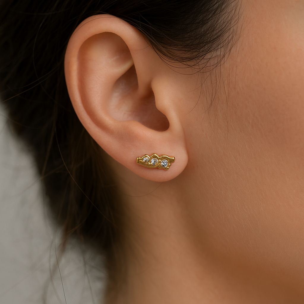Three Sparkling Zircons: The addition of three sparkling zircons enhances the allure of these earrings. The subtle shimmer adds a touch of glamour, elevating the Stick Stud Earrings to a perfect balance between minimalism and sophistication.