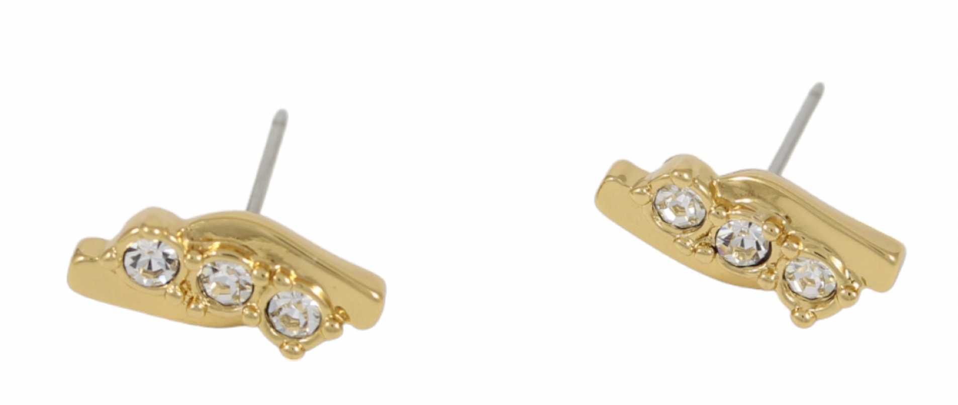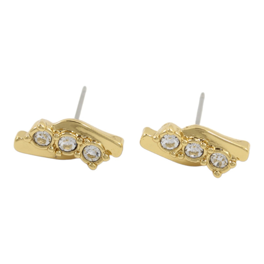 Stick Stud Earrings Real Gold Plated with 3 Zircons