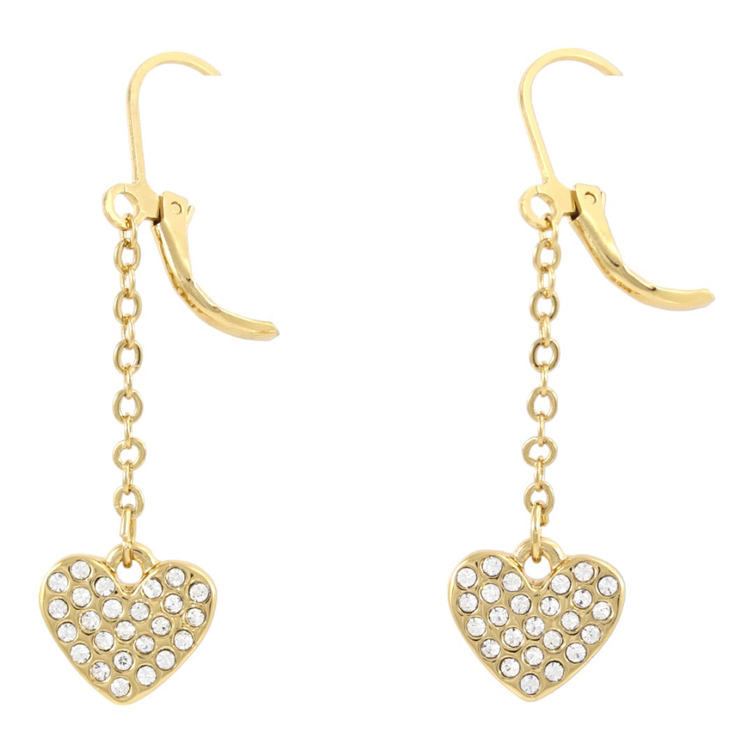 Fancy Dangle Hearts with precious Zircons. Double washed with real Gold 24K. Show your elegance and beauty with these gorgeous dangle earrings.