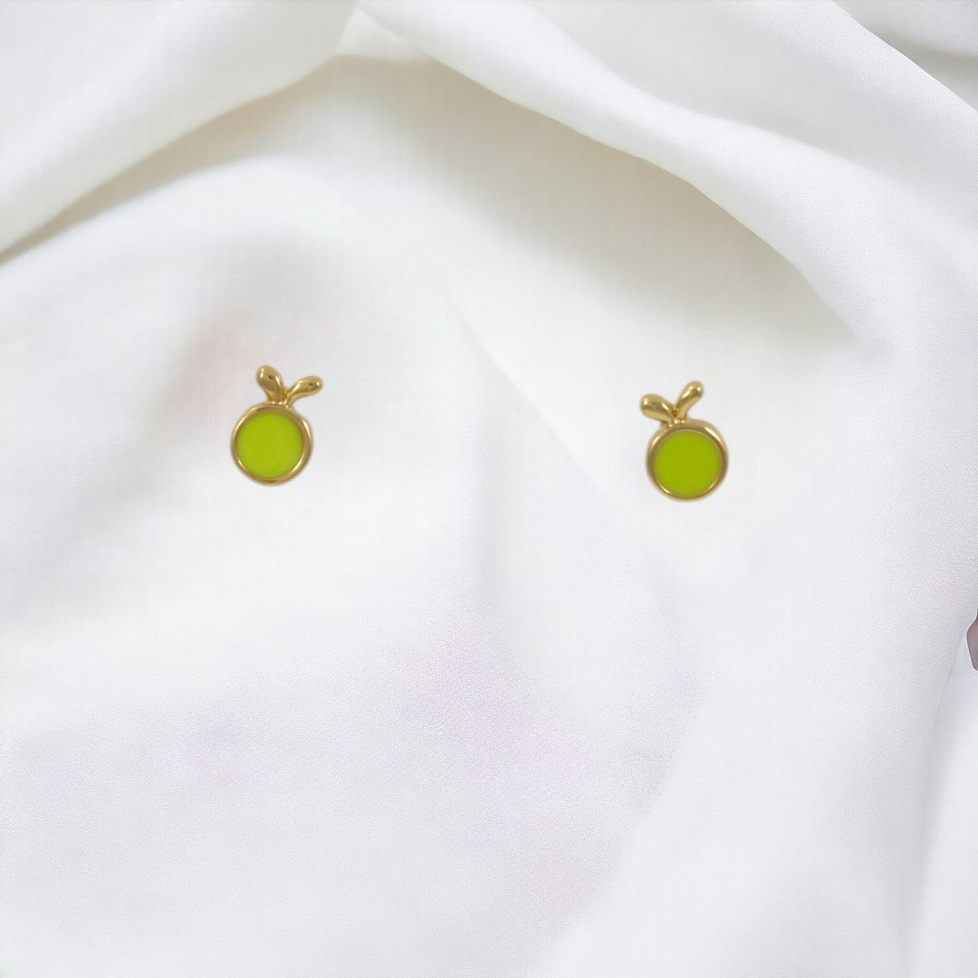 Green Apple Stud Earrings Gold Plated 24K