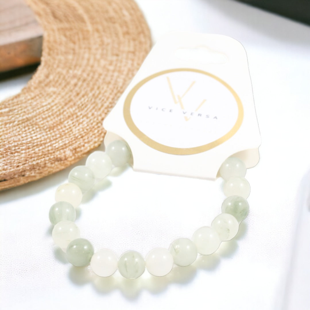 ✨ Order Your White and Light Green Natural Jade Smooth Bracelet Today!