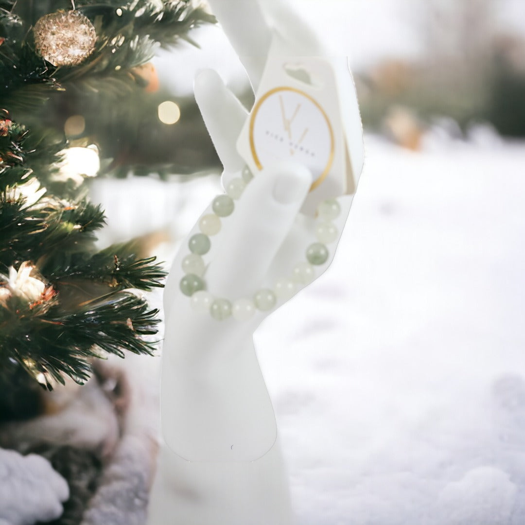 Immerse yourself in the soothing hues of jade, each bead carefully crafted for a bracelet that radiates sophistication and grace.