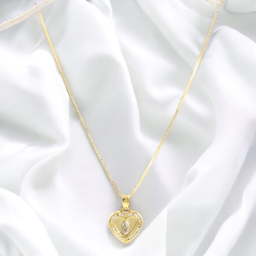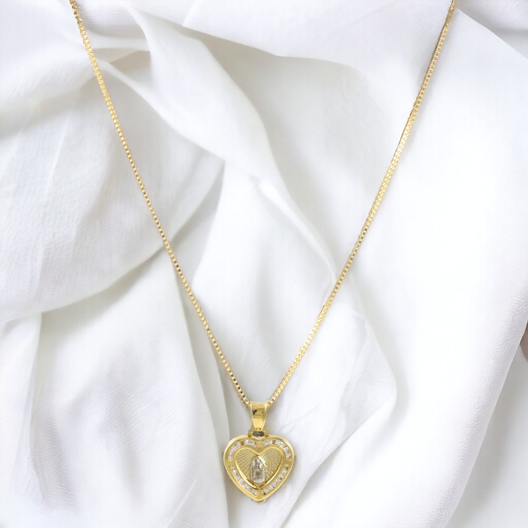 Heart Blessed Virgin Mary Valentino Chain 20'' Necklace Real Gold Filled 18K