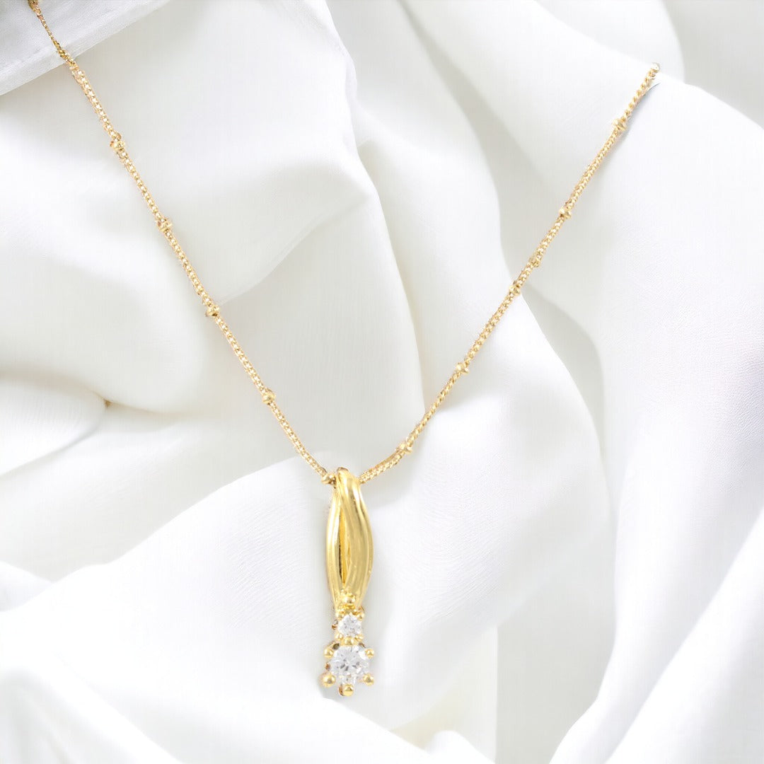 Long Charm 2 Zircon Necklace Gold Plated 24K