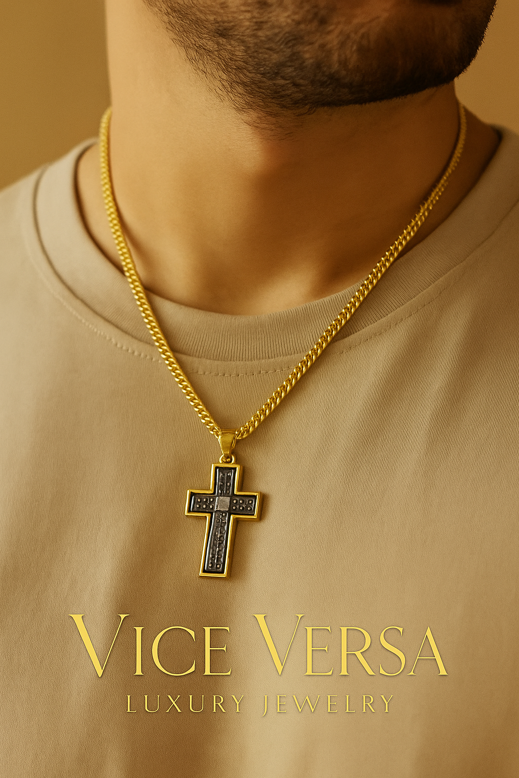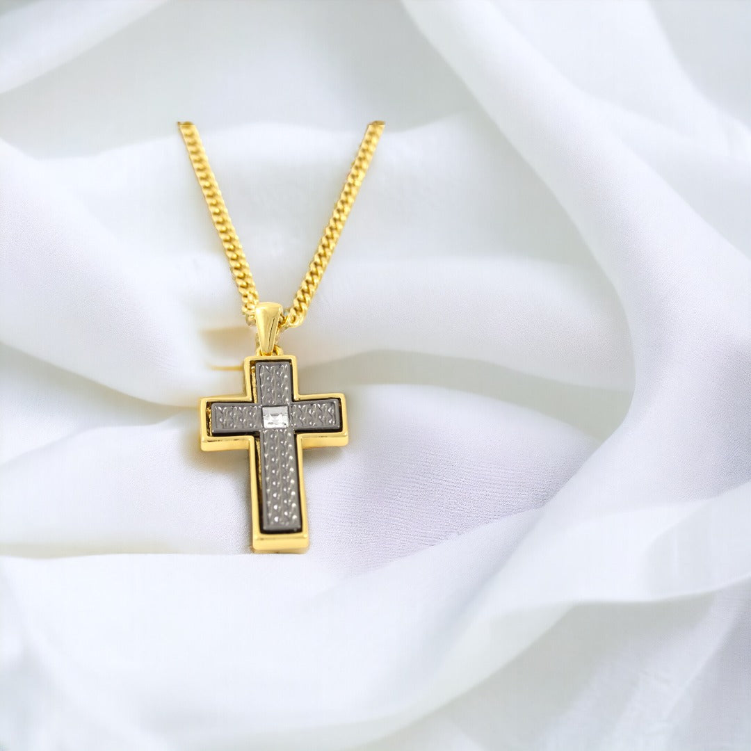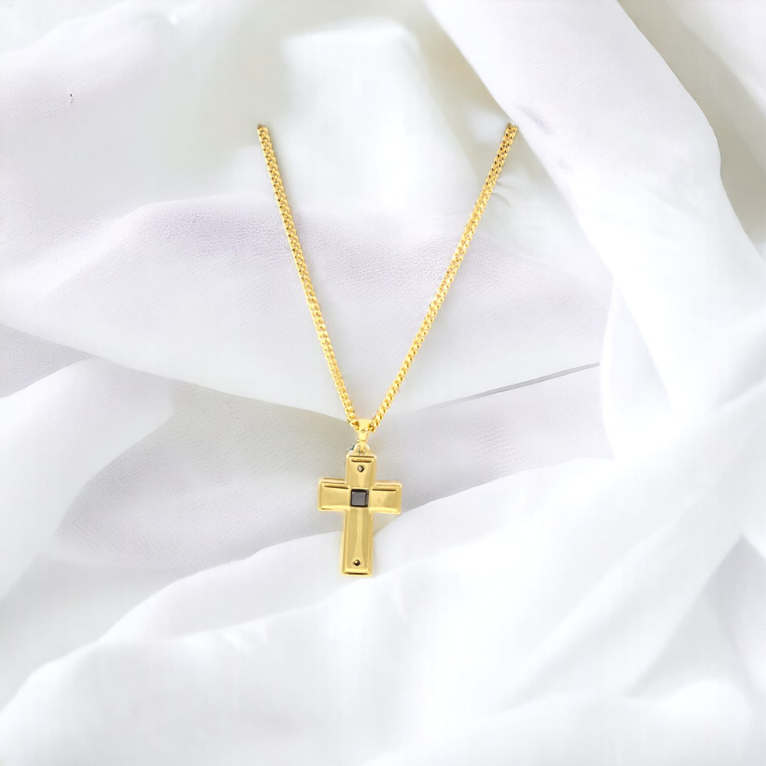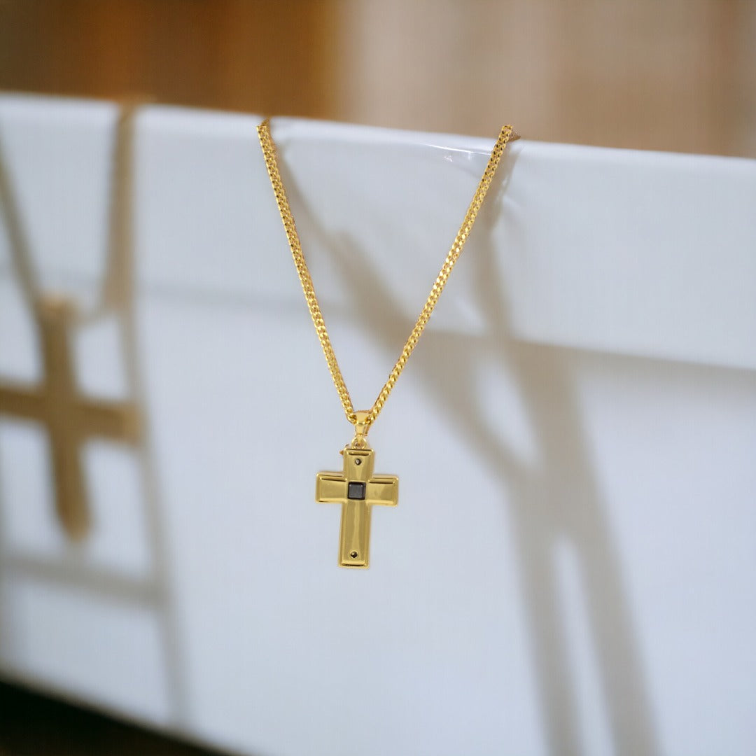 Make a powerful statement of faith and style with our Men's Cross Necklace. Meticulously crafted and plated in luxurious 24K gold, this necklace is a breathtaking embodiment of masculine elegance, contemporary design, and enduring grace.