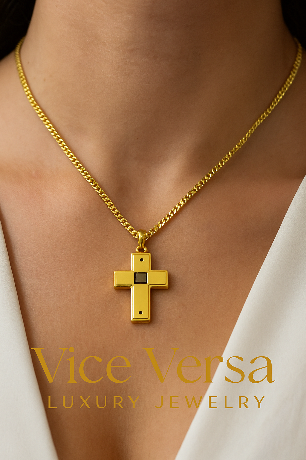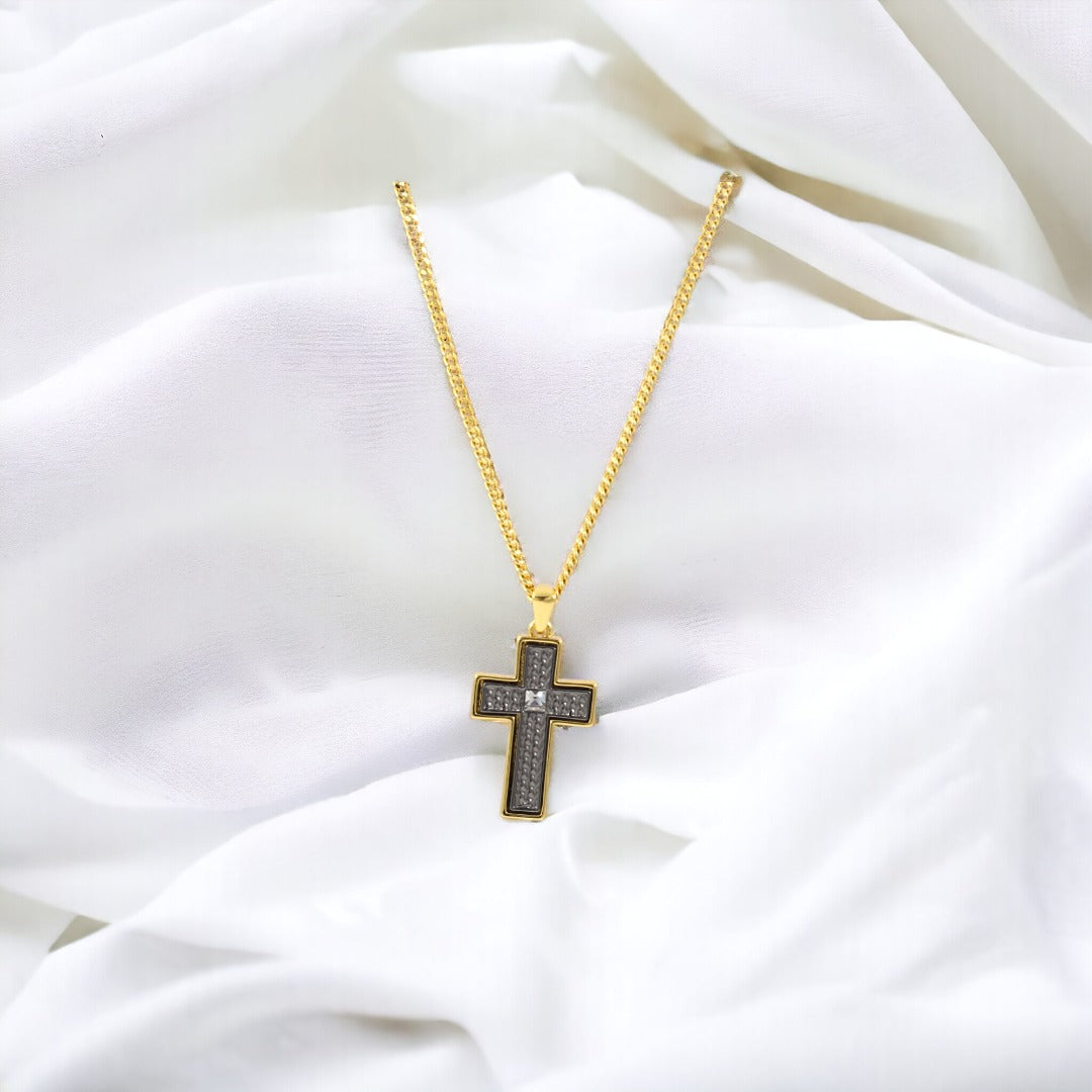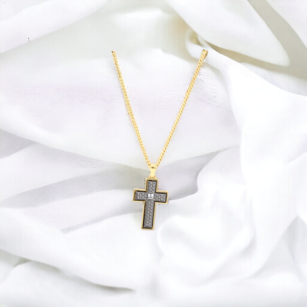 Make a powerful statement of faith and style with our Men's Cross Necklace. Meticulously crafted and plated in luxurious 24K gold, this necklace is a breathtaking embodiment of masculine elegance, contemporary design, and enduring grace.