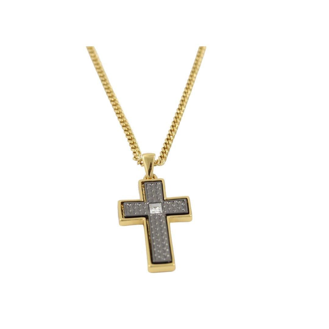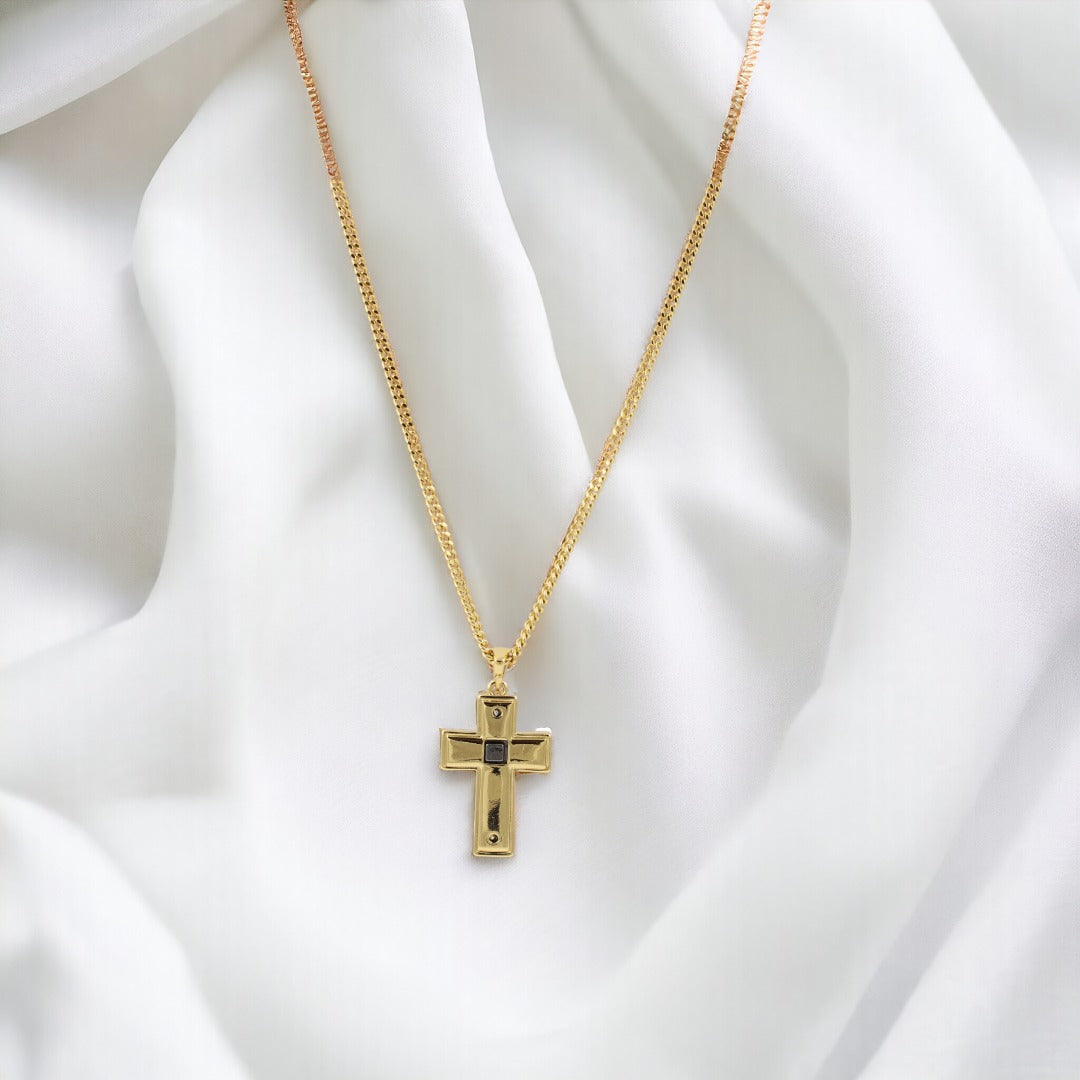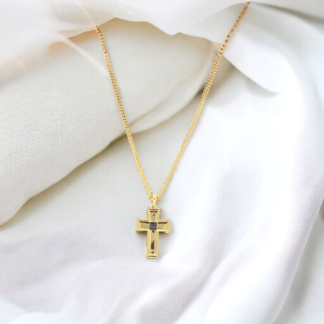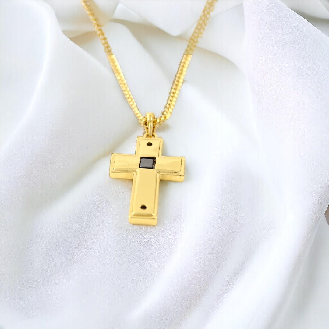 Double Side Men's Cross Gold & Black thin design Necklace Gold Plated 24K
