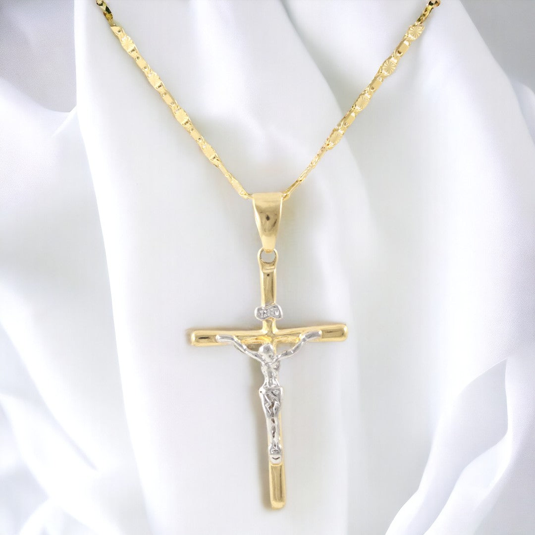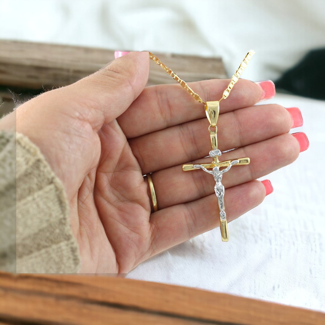 Men's Long Crucifix Valentino Chain 20'' Necklace Real Gold Filled 18K