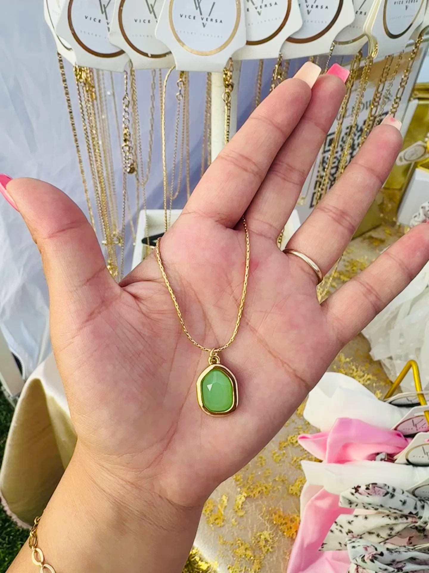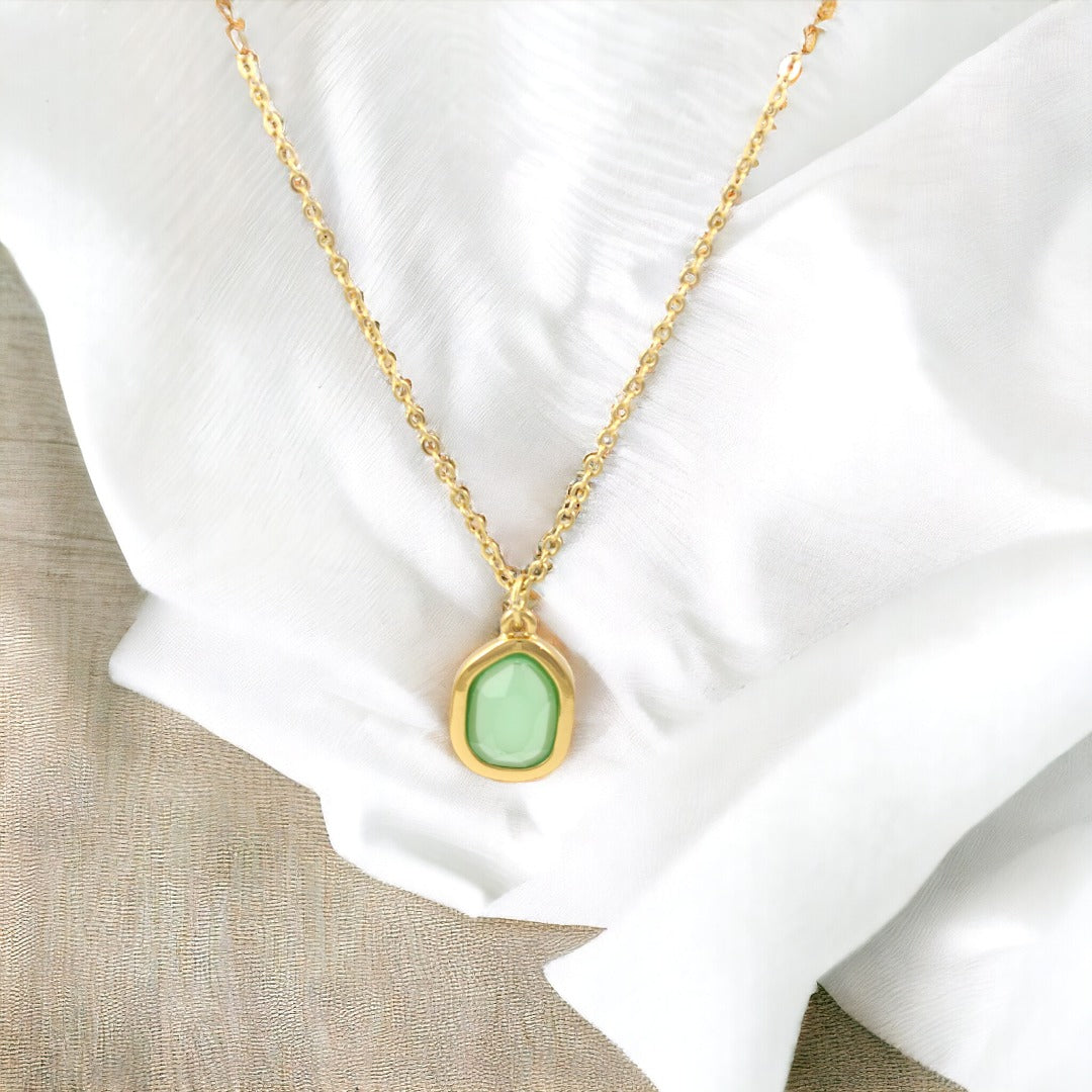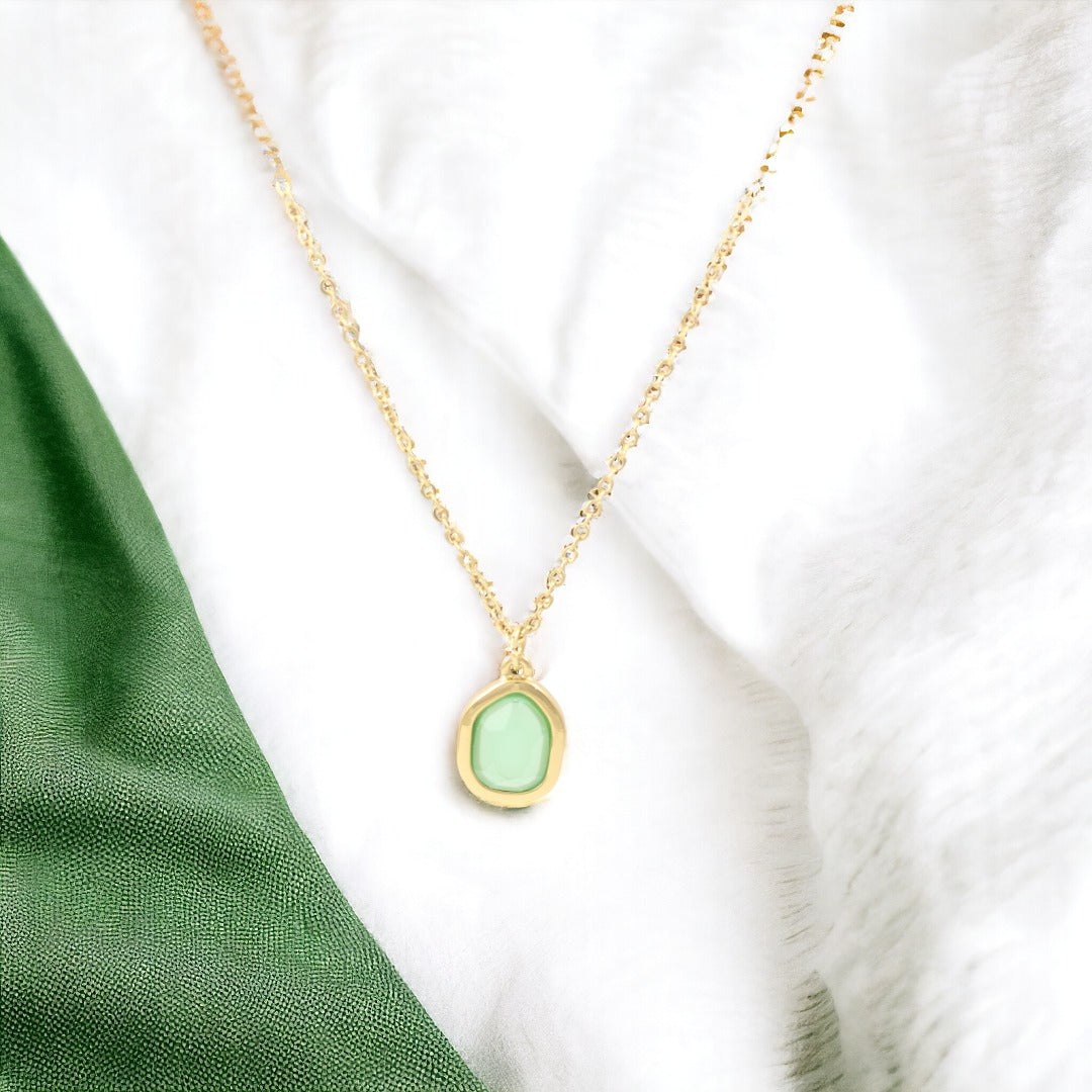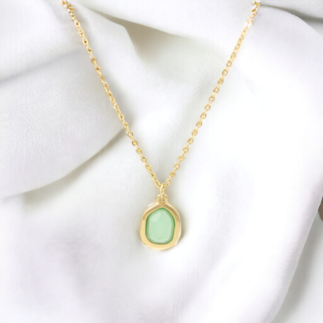 Adorn yourself with the tranquility of nature embodied in our Natural Green Stone Necklace. Each stone is carefully selected for its unique shade and organic patterns, ensuring that no two necklaces are alike. Let the calming hues of green resonate with your inner harmony.