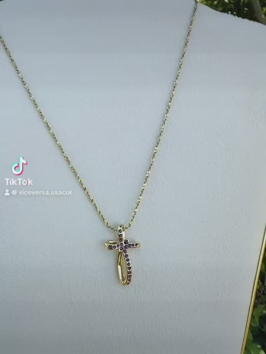 Adorn your neckline with the timeless and sacred symbol of the cross, adorned with a single zircon accent. This elegant design adds a touch of divine beauty and sophistication to your ensemble, making it a unique and meaningful accessory.