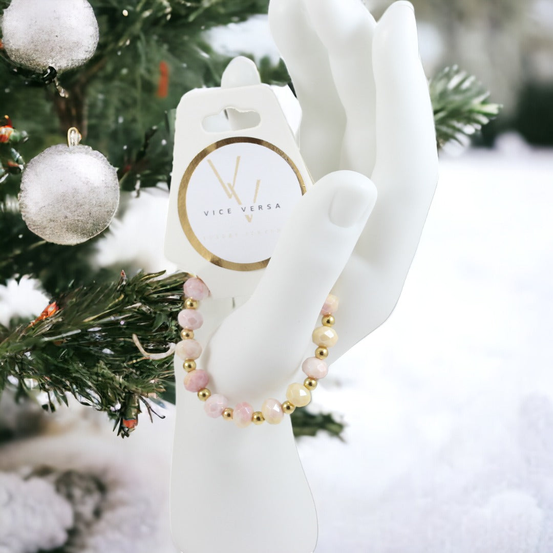 Pink Yellow Color High Quality Faceted Crystal Glass Beads Bracelet.