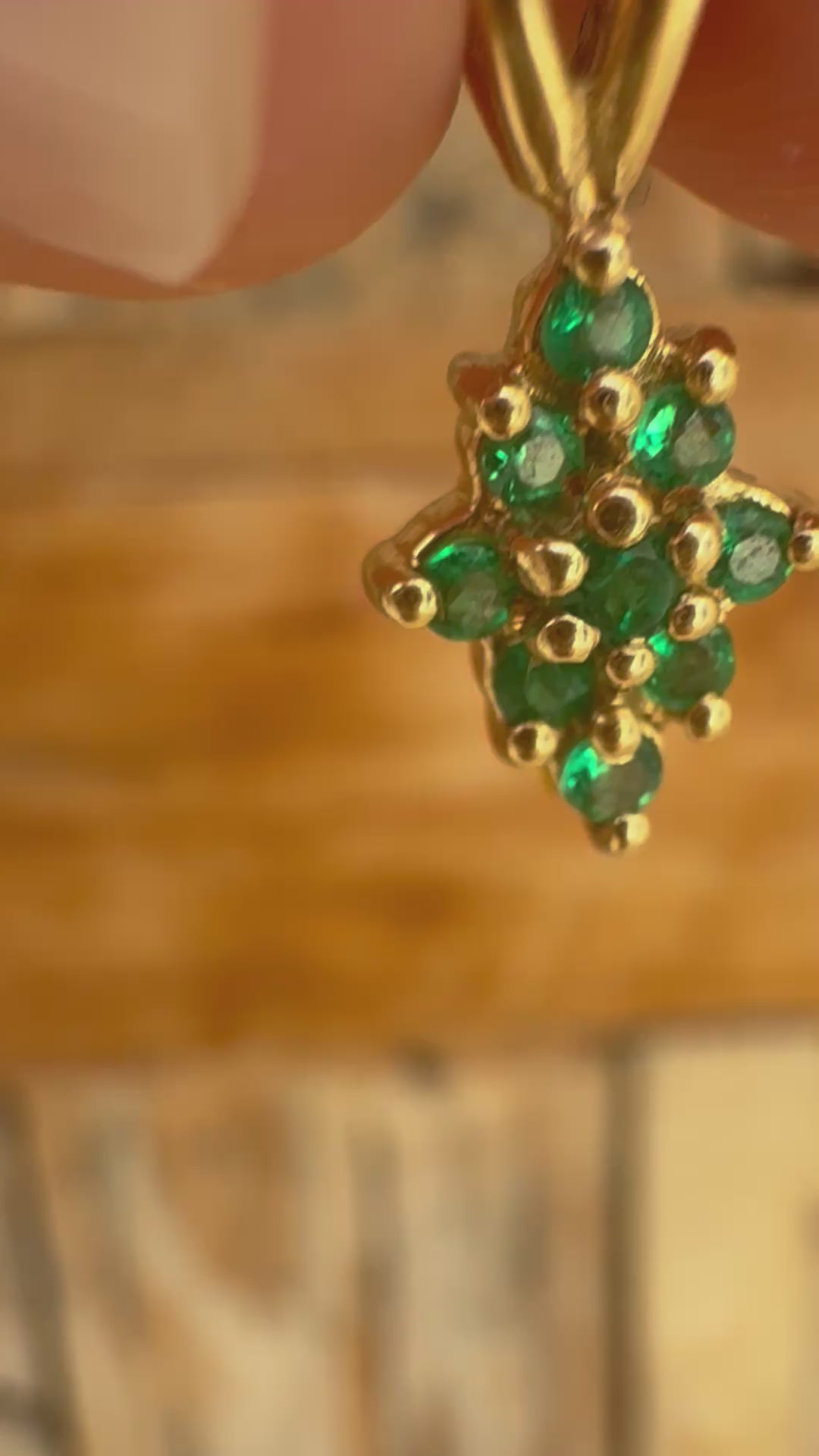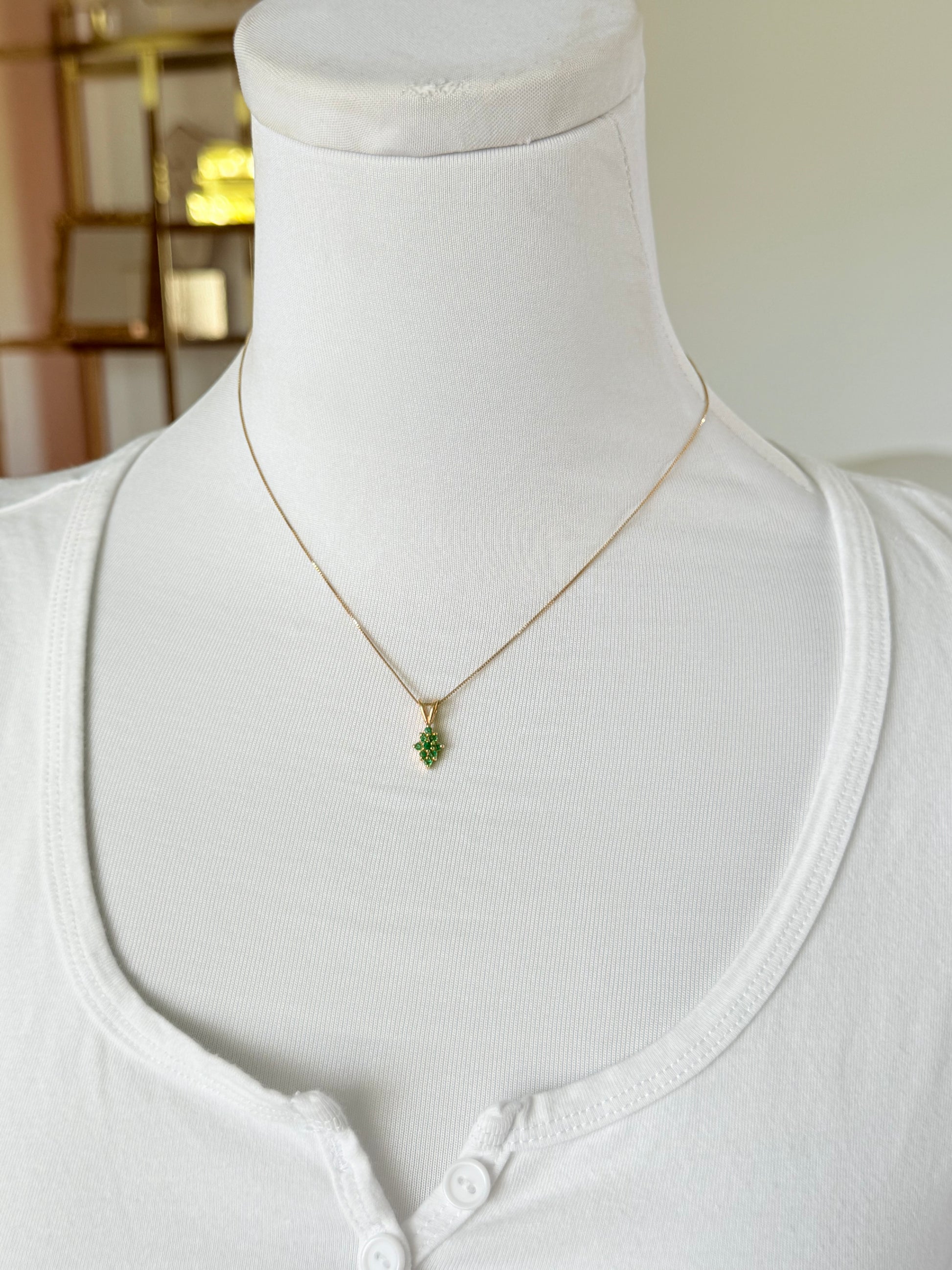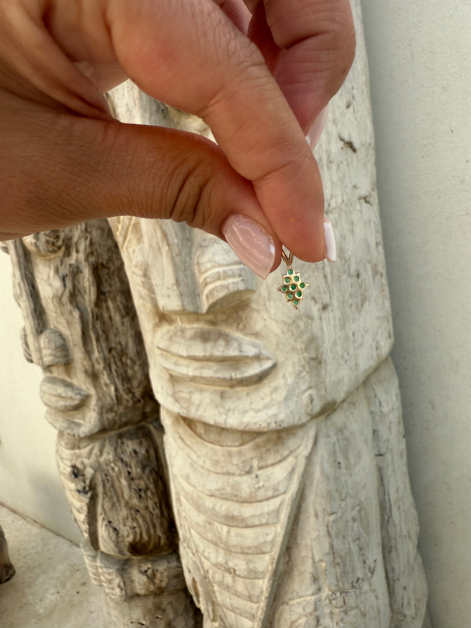 Pine Shape Colombian Emerald & Diamond charm & Solid Gold 18K Italian