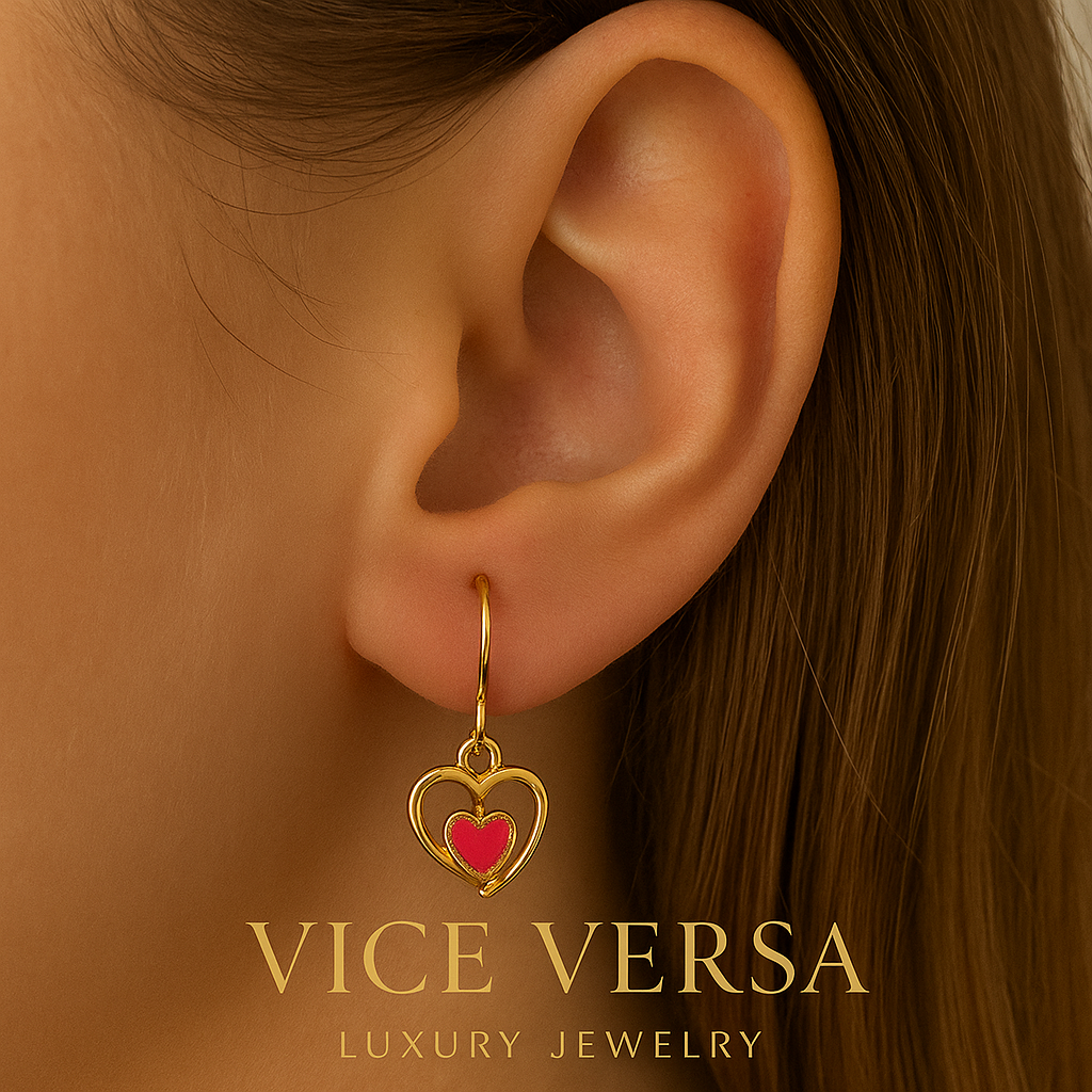 Pink Heart inside another heart 24K Gold Plated
