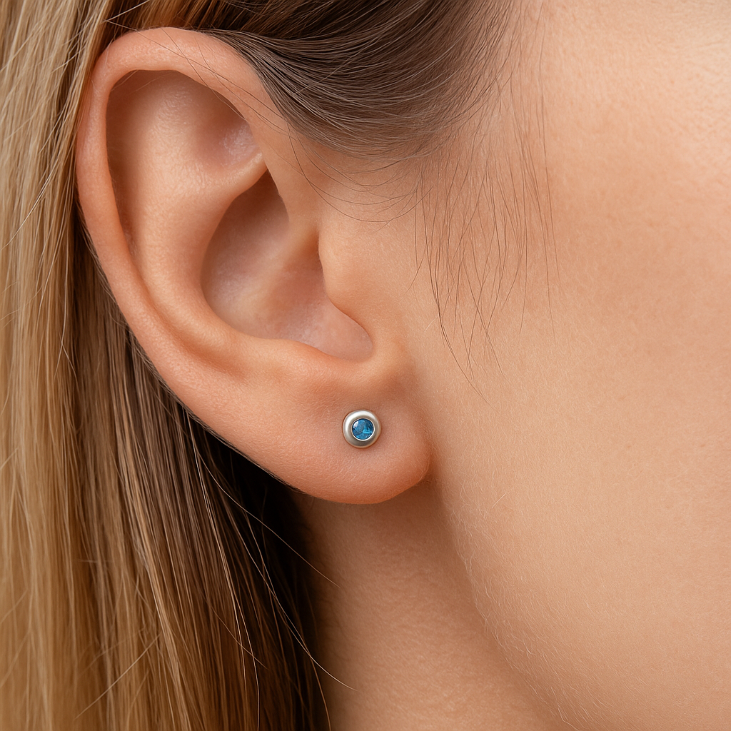 SILVER PLATED STUD EARRINGS SMALL BLUE ZIRCON