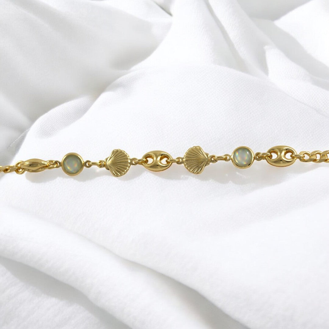 Anklet Bracelet Cuban Pearl Seacharm Gold Filled 18K