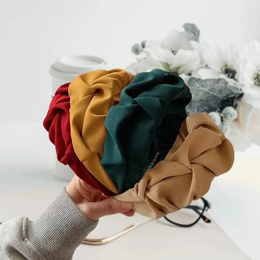 Dark Green Solid Color Ruched Simple Knotted Wide Hairband Retro Headband Hair Accessories For Summer Beach Travel
