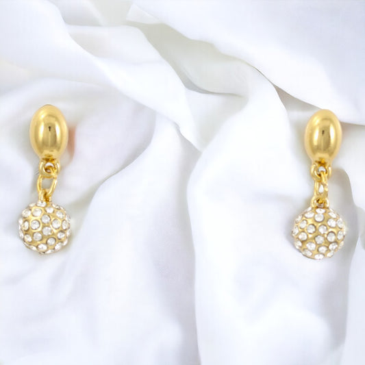 Fancy zircons Ball Drop Earrings Gold Plated 24K