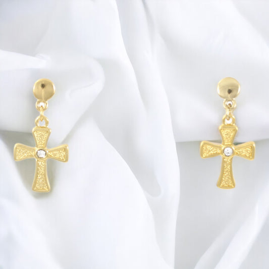 Handmade Big Cross Earrings Gold Plated 24K Stud Earrings