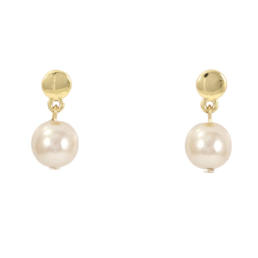 Cream Pearl Drop Earrings Real Gold Plated 24k