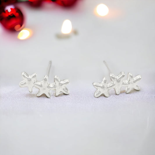 SILVER PLATED EARRINGS 3 STARS