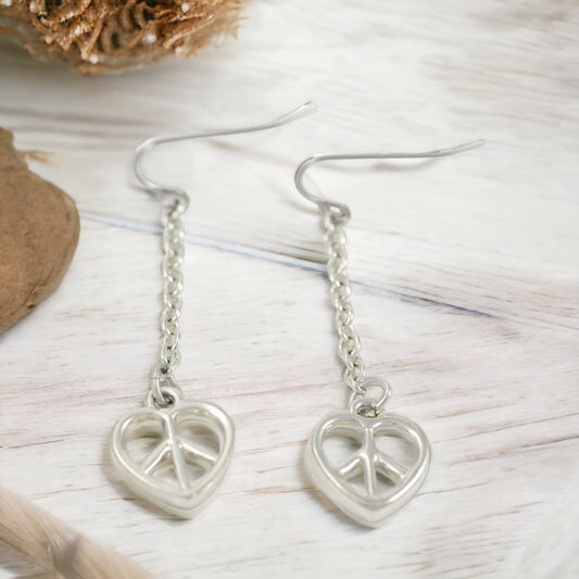 Dangle Heart Silver Plated Earrings