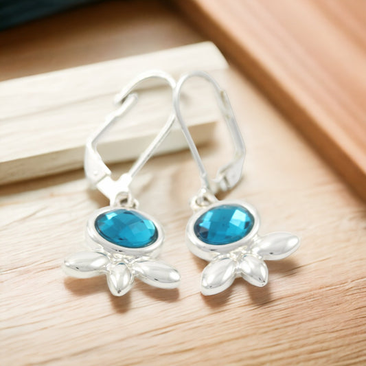 SILVER PLATED STUD EARRINGS SMALL BLUE ZIRCON