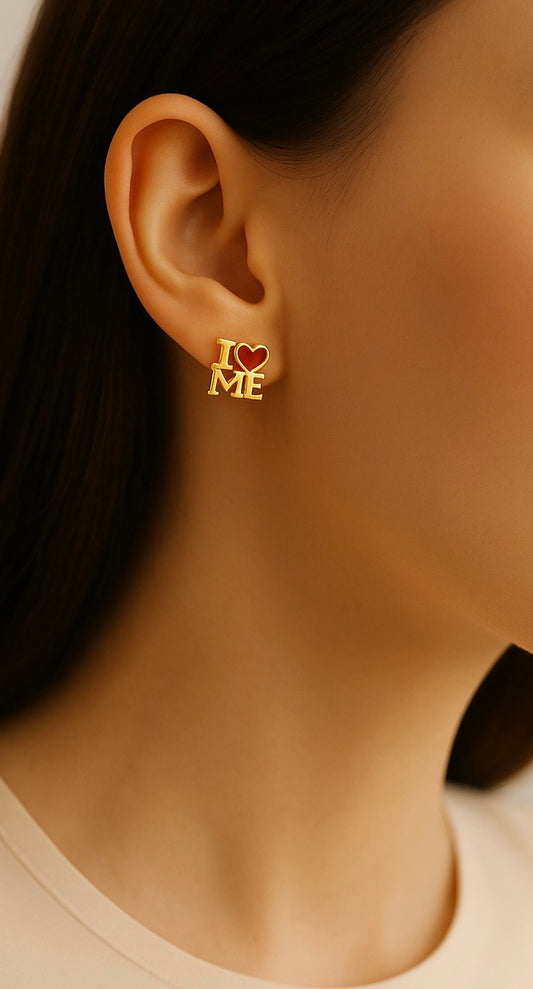 I Love Me - Red Heart Real Gold Plated Stud Earrings