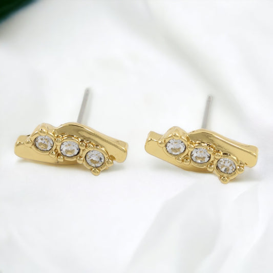 Stick Stud Earrings Real Gold Plated with 3 Zircons