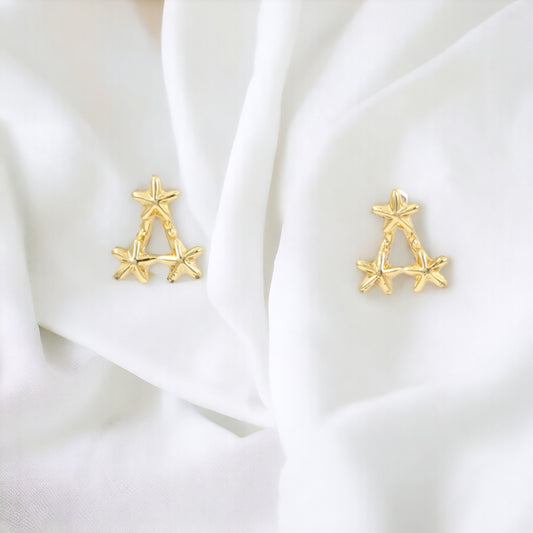 Pyramid 3 Stars Stud Real Gold Plated Earrings