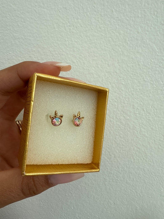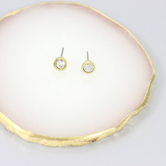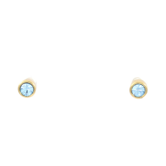 Blue 1 Zircon Stud Earrings Gold Plated 24K