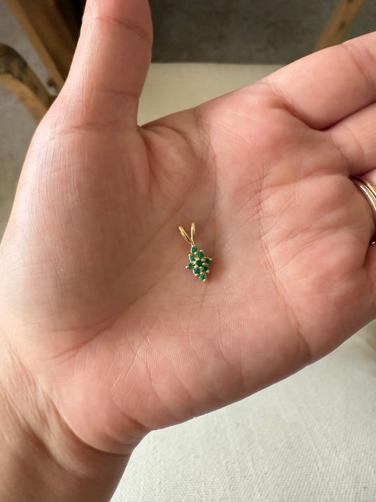 Pine Shape Colombian Emerald & Diamond charm & Solid Gold 18K Italian