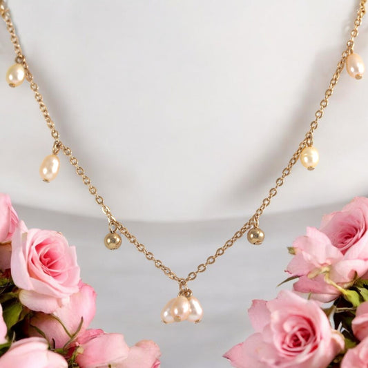 Pearls Rose Gold Plated Necklace