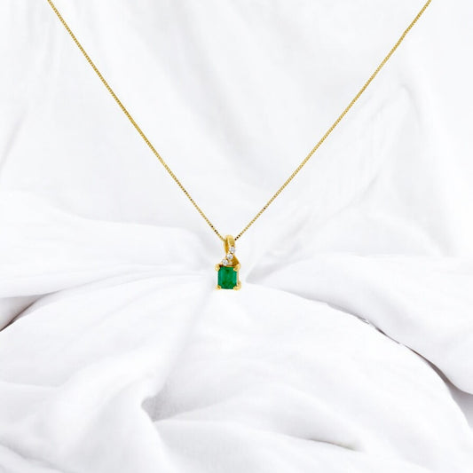 Square Shape Colombian Emerald & Diamond charm & Solid Gold 18K Italian
