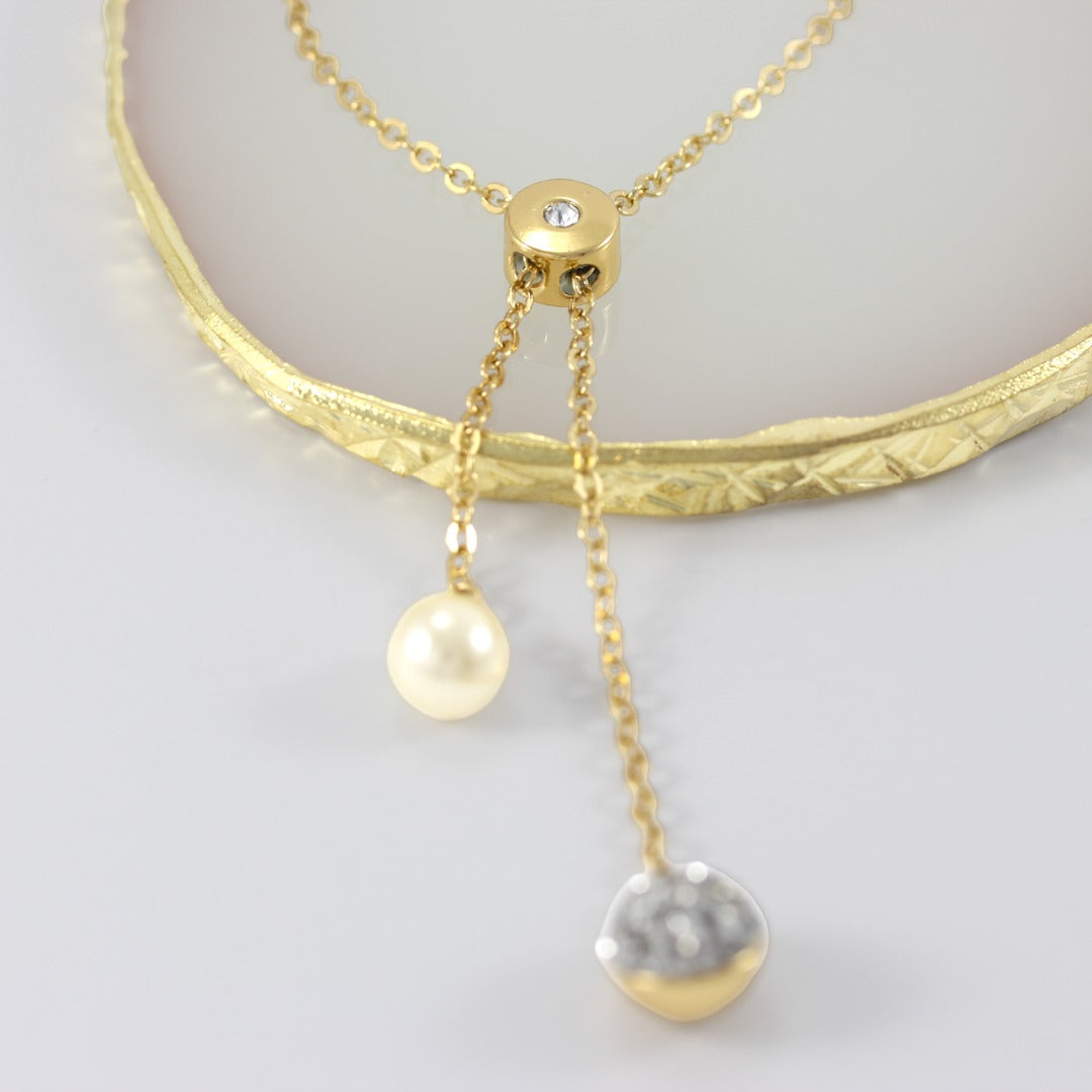 Make a statement that exudes sophistication and timeless beauty with our Pearl and Gold Zircon Gold-Plated Necklace. Meticulously crafted and plated in luxurious 24K gold, this necklace is a breathtaking embodiment of classic charm and modern allure.