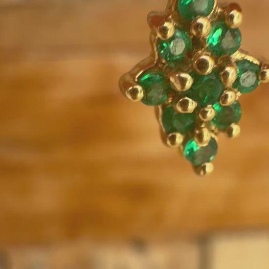 Pine Shape Colombian Emerald & Diamond charm & Solid Gold 18K Italian